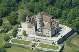Ce dernier succède à un oppidum romain ; sa partie la plus ancienne, la tour des Religieuses, date du XIIIème siècle. Parmi ses propriétaires, outre la famille qui lui donna son nom, mais qui est très mal connue, on relève le Duc de Savoie, Amédée VIII (pape Félix V), ou encore la famille de Menthon-Montrottier, illustrée notamment par Pierre de Menthon, qui fut ambassadeur de Savoie au XVème siècle et fit partie du célèbre complot de Varembon (contre le favori d’Anne de Chypre, duchesse de Savoie), qui aboutit à son assassinat par Jacques de Compey, seigneur de Thorens, au pied même de Montrottier, le 31 mars 1455 !… Sans oublier Léon MARÈS, qui est enterré dans le parc du château et qui laissa – et organisa – ses collections diverses et variées au château. A sa mort en 1916, il les lègue à l’Académie Florimontane qui en est toujours la propriétaire et administratrice (Académie Florimontane fondée par St François de Sales et le président du Sénat de Savoie, Antoine FAVRE , également père du grammairien Vaugelas, et dont s’inspirera Richelieu pour fonder l’Académie Française…).